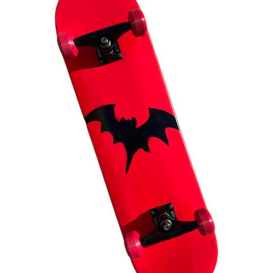 Stardust Skate Shop Bright Red / Matte Black Bat 041 Mid Size Pre-Built Complete Entry Level Skateboard 8.125" x 31.8"